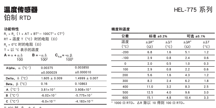 HEL-775 铂制 RTD 专用于测量印刷电路